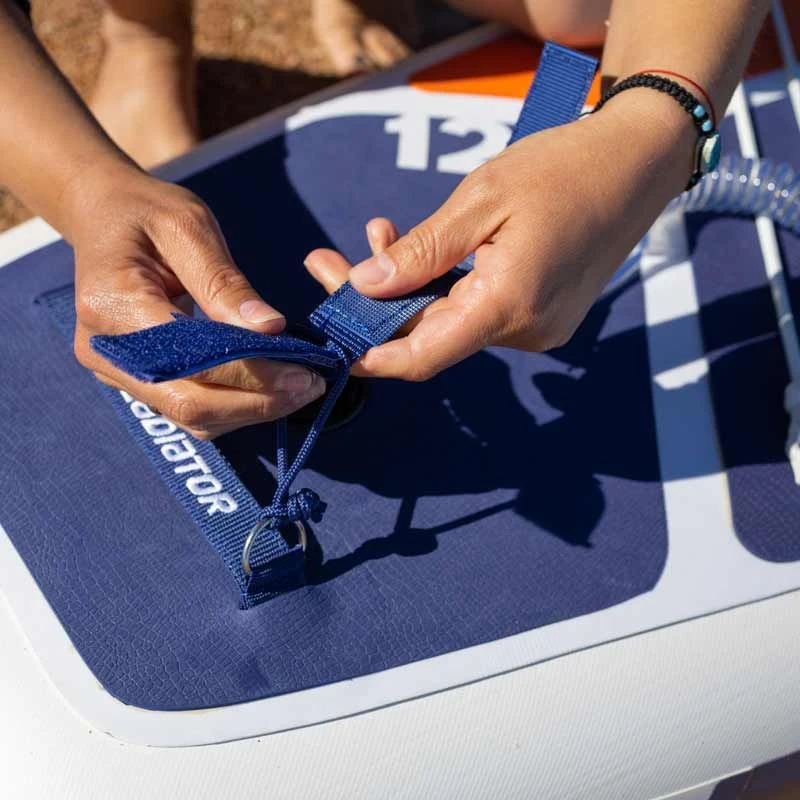 The Handle Design: Gladiator central handle is a super comfy thick paddled handle allowing carrying your board to the waterside to be super comfortable, the front and back handle are flat webbed designed allowing for a super durable and minimalistic look.