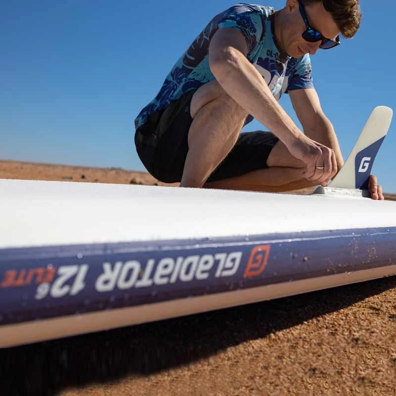 The Fin and Fin Box Design: Gladiator Elite resin and honeycomb 9″ touring fin offer premium durability and lightness. The hexagonal foam core mat in these fins reduces the resin content, making the fin lighter while keeping the fin stiff where it counts. This gives these fins a medium flex pattern making them great for performance paddling.
