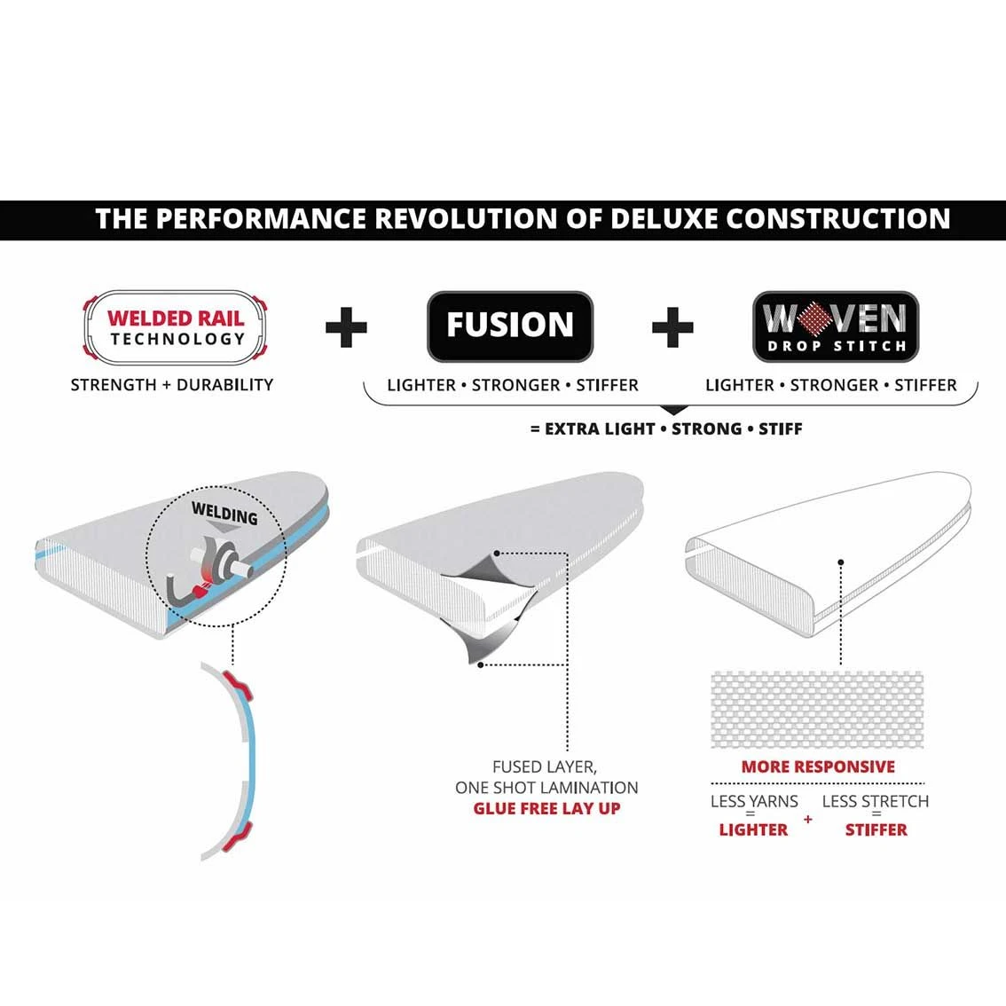 WEAVE DROPSTITCH Made from a market-leading machine weave double laminated dropstitch, 20% lighter and stiffer than fusion layer boards. The weave has less give than the traditional knitted method, which gives superior flex and rigidity, with no compromise on durability.