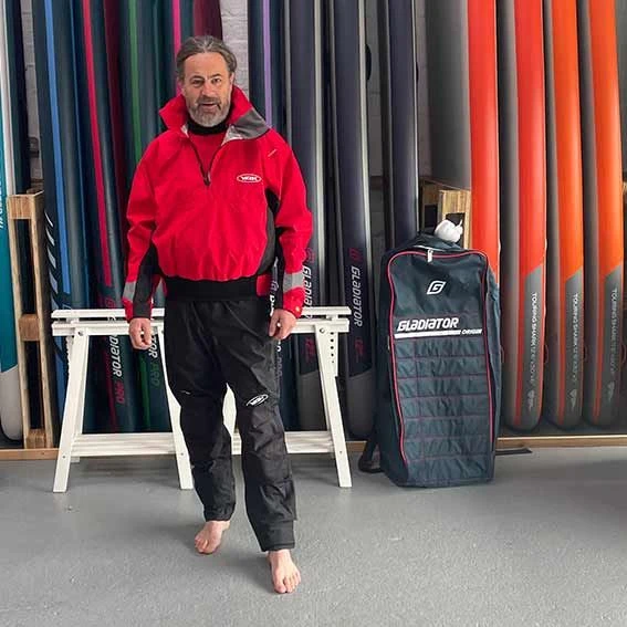 The Yak paddleboarding waterproof dry trousers work perfectly worn on their own or with the matching Yak Apollo jacket.