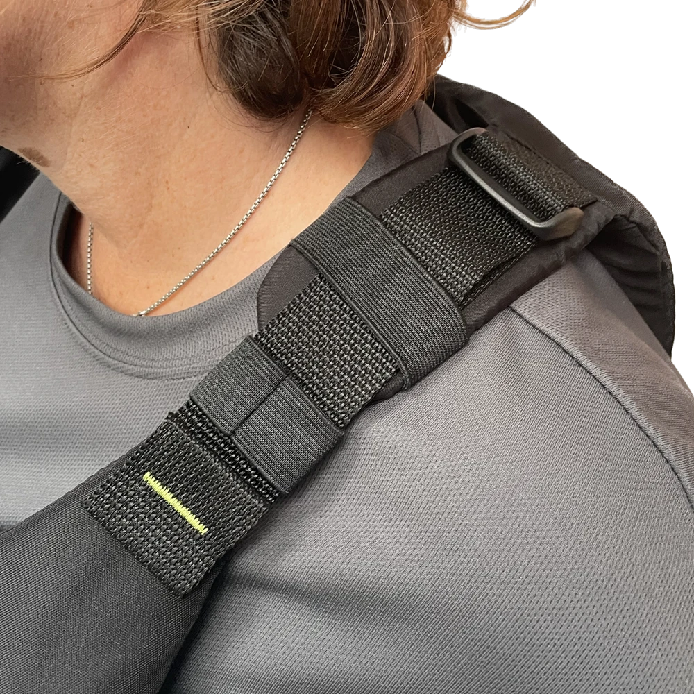 Padded shoulder adjustment to allow a wide size range adjustment